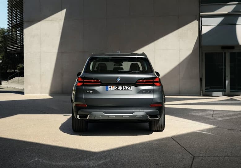 Đuôi xe được làm mới hoàn toàn với cụm đèn hậu LED 3D, tạo thành hình chữ X – biểu tượng thị giác đặc trưng của X5 thế hệ mới. Cản sau màu bạc và ống xả đôi được làm nổi khối khiến tổng thể trở nên vững chãi, uy lực.