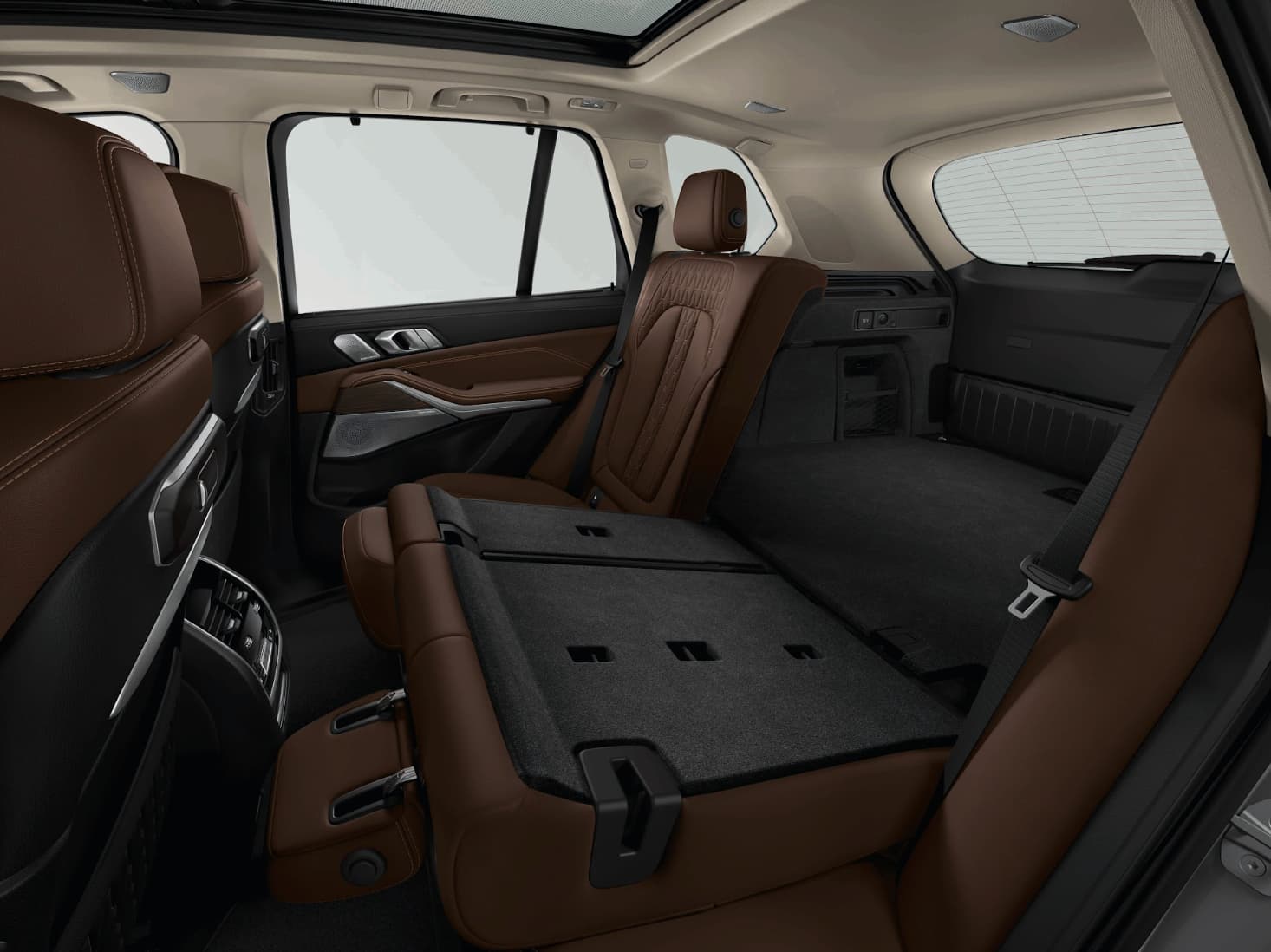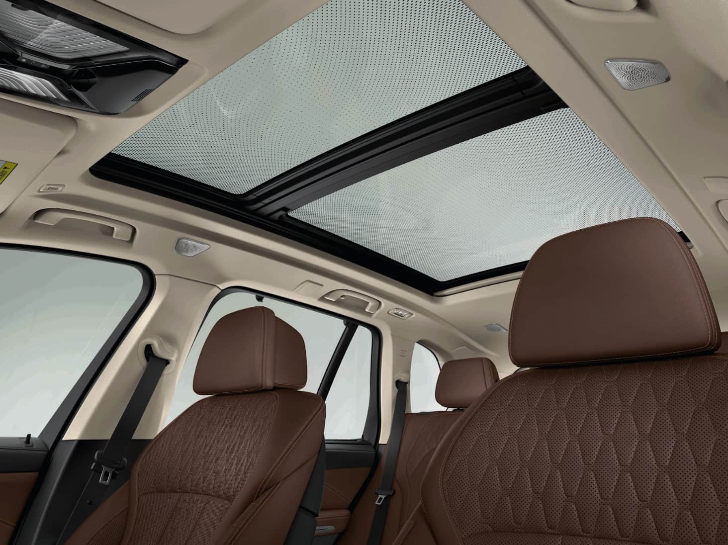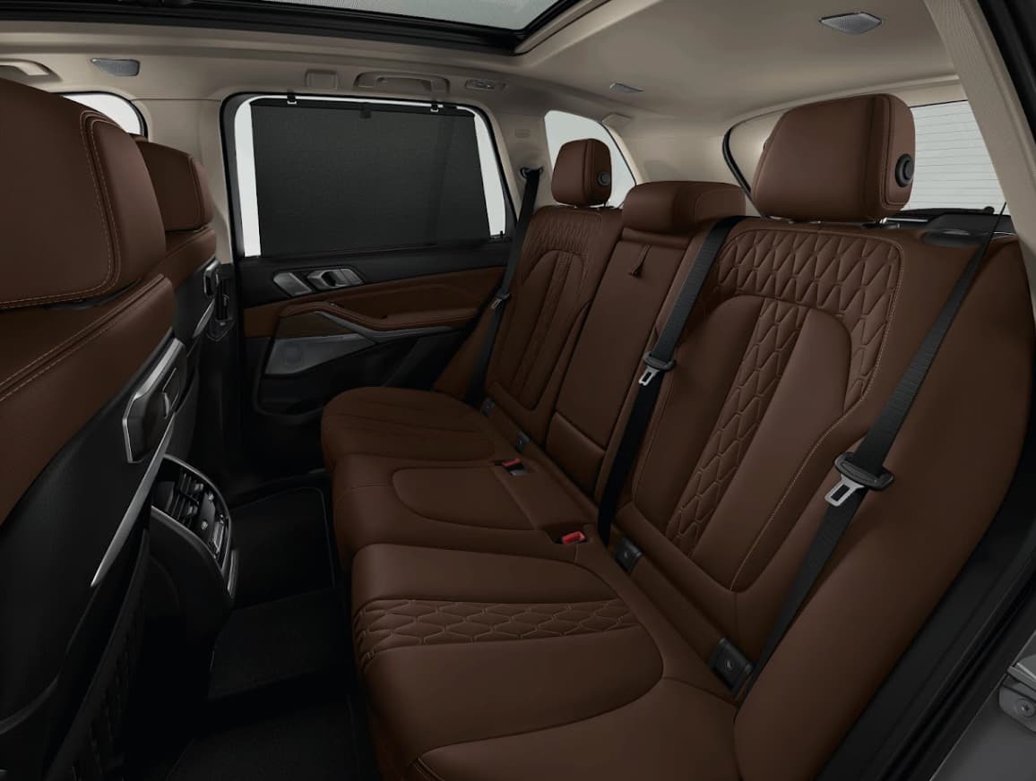 Khoang nội thất BMW X5 2025 mở ra không gian 3 hàng ghế rộng rãi, thoải mái cho mọi hành khách. Vật liệu cao cấp như da Sensatec, ốp nhôm Mesheffect và các chi tiết pha lê CraftedClarity mang đến cảm giác sang trọng trong từng điểm chạm.