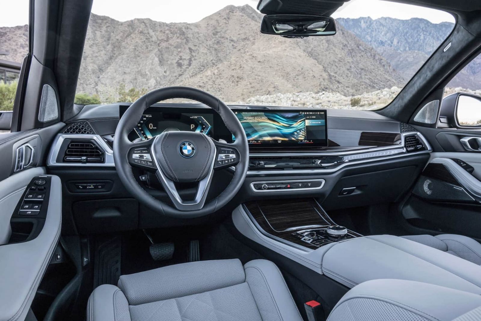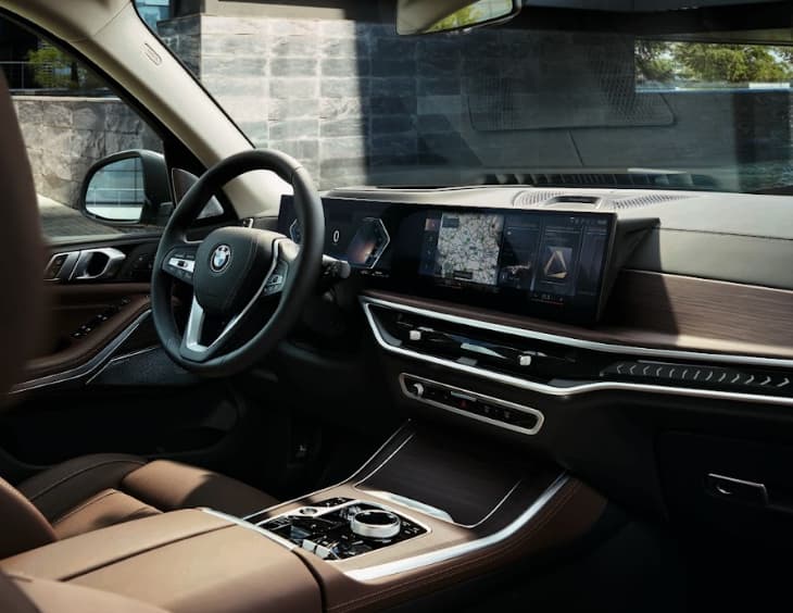 Tâm điểm của khoang lái là màn hình cong BMW Curved Display, kết hợp giữa đồng hồ kỹ thuật số 12,3 inch và màn hình giải trí 14,9 inch chạy hệ điều hành iDrive 8.0. Thiết kế tối giản, hiện đại, giảm bớt các nút cơ học để mang lại trải nghiệm điều khiển trực quan hơn. Cần số truyền thống được thay bằng nút gạt hiện đại, mang đến vẻ tinh giản và sang trọng.